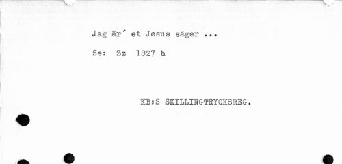 //// Jag är' et Jesus säger ... //// Se: Zz 1827 h //// KB:S SKILLINGTRYCKSREG. ////