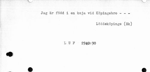 //// Jag är född i en koja vid Köpingebro - - - //// Löddeköpinge (Sk) //// L U F 2940:90 //// ^^H PPT //// i in ' ////