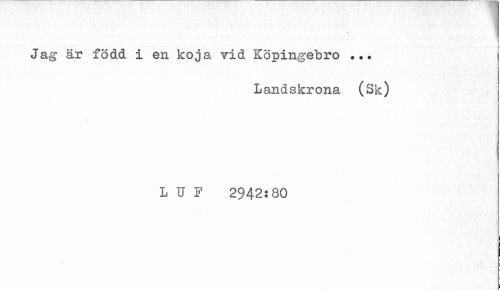 //// Jag är född i en koja vid Köpingebro ... //// Landskrona (Sk) //// L U F 2942:80 ////
