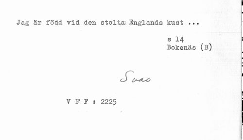 //// ¦ //// Jag är född vid den stolta Englands kust .?• //// s 14 i //// Bokenäs (b) //// ¦ ¦ ¦ //// • i! //// v F f : 2225 | //// ¦ //// J ////