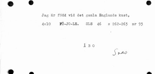 //// Jag är född vid det gamla Englands kust, //// 4:10 fÖ-JO-LE. SLS 46 s 262-263 nr 93 //// / //// i b o //// j ////