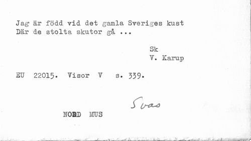 //// Jag är född vid det gamla Sveriges kust Där de stolta skutor gå ... //// Sk //// V. Karup //// EU 22015. Visor V s. 339- //// S Lr<*^> //// . ---'S-. -___AUt_m*^. __-;.___ ... ...---.. . ___r-- ___^ ////