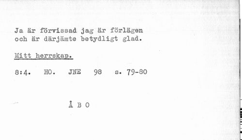 //// Ja är förvissad jag är förlägen och är därjämte betydligt glad. //// Mitt herrskap* //// 8:4. HO. JHE 98 s. 79-80 //// ÅBO //// i i ////