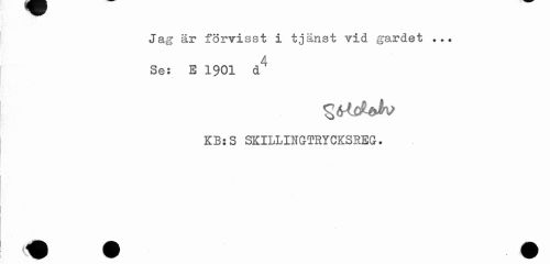//// Jag är förvisst i tjänst vid gardet ... //// 4 //// Se: E 1901 d //// ^érldåJh //// KB:S SKILLINGTRYCKSREG. //// ¦ ¦ B //// 4' ////