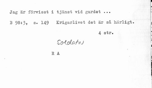 //// Jag är förvisst i tjänst vid gardet ... B 98:3, s* 149 Krigarlivet det är så härligt. ; //// 4 str. f //// €o<SUJVKJ //// t ~ //// R A //// • - //// ¦ ////