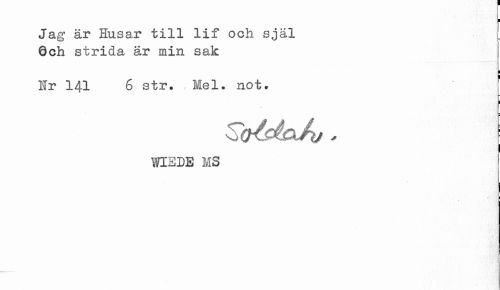 //// I //// Jag är Husar till lif och sjal 6ch strida är min sak //// i //// Hr 141 6 str. , Mel. not. //// 1 //// WIEDE MS ' //// ¦ ////