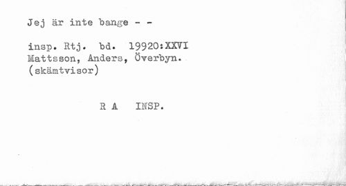 //// Jej är inte bange - - //// insp» Rt j. bd. 19920*.XX?I Mattsson, Anders, Överbyn. (skämtvisor) //// .; vj //// a A INSP. //// - - ---^-^Éä--- . --- ^é^ *---v---«---,--^i^^^jfjUi___r„ ////