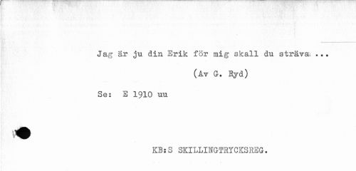 //// Jag ar ju din Erik för mig skall du sträva; ?. • //// (Av G. Syd) //// Se: E 1910 uu //// I ^ pr //// KB:S SKILLINGTRYCKSREG. ////