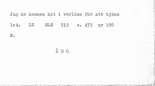 //// Jag är kommen hit i världen för att tjäna //// 1:4. LU SLS 512 s. 475 nr 220 I. //// ÅBO //// y //// ¦ i //// \ i //// • Ji ___-'...i- - ^___t ___-- --- --- --- ---„---+ ___ ___ ////