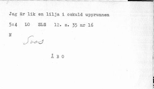 //// Jag är lik en lilja i oskuld upprunnen //// 5:4 L0 SLS 12. s. 35 nr 16 //// ¦ //// N //// J i^d //// Ibo //// * ////