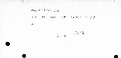 //// Jag är liten jag //// 1:6 PA SLS 512 s. 692 nr 363 I. //// ty/9 //// A B O ' ' //// A. / ////