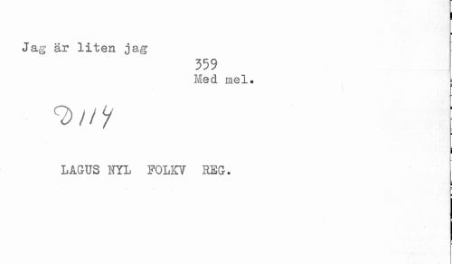 //// i ¦ //// i //// Jag är liten jag //// 359 //// Med mel. //// i>ni I //// i //// i //// LAGUS HYL FOLKV REG. //// i ////
