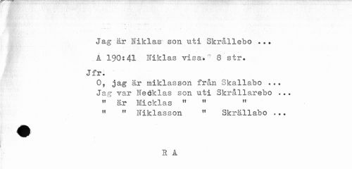 //// ---... A- .. ... . ~ . X - J . \ - . //// Jag är Niklas son uti Skrållebo ... //// A 190:41 Mk //// Ies visa.™ 8 str. //// Jfr. " //// 0, jag är miklasson från Skallabo ... Jag var Nedklas son uti Skrållarebo ... » är Micklas " " " //// " " Miklasson " Skrällabo ... //// H A ////