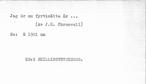 //// t //// Jag är nu fyrtioåtta år ... //// \ //// (Av J.H. Chronvall) Se: E 1901 nn //// KB:S SKILLINGTRYCKSREG. //// - ~ ' - » t • ////