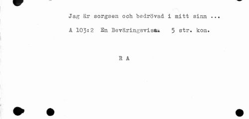 //// Jag är sorgsen och bedrövad i mitt sinn ... A 103:2 En Beväringsvisaa 5 str. kom. //// R A ////