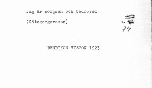 //// Jag är sorgsen och be dr övad //// i //// (Götegorgsresan) s# //// BSMDIXOS VISBOK 1923 //// ¥ ////
