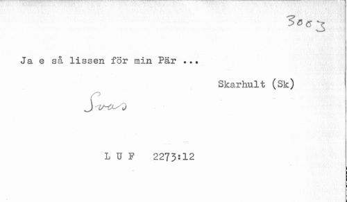 //// 3 6 (S > //// Ja e så Hissen för min Pär ... //// Skarhult (Sk) //// J //// L U F 2273:12 ////