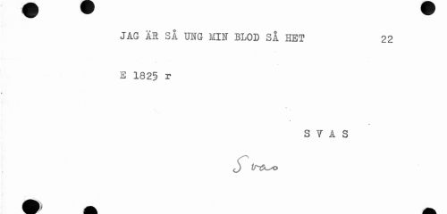 //// JAG ÄR SÅ TOG MIN BLOD SÅ HET 22 //// \ //// E 1825 r //// S V A S //// j Ir&^o ////