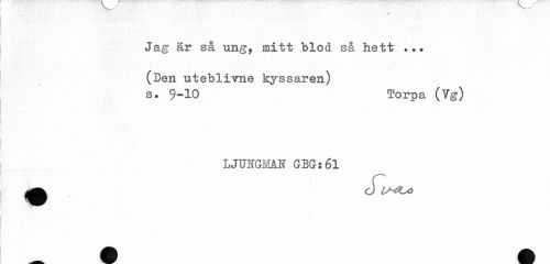 //// Jag är så ung, mitt blod så hett ... //// (Den uteblirne kyssaren) //// s. 9-10 Torpa (Vg) //// LJUIGMAN GBG:6l //// ^ cT^ //// 1 V1 //// c?1: B' ////