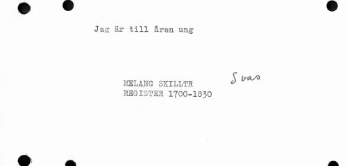 //// Jag är till åren ung //// melamg skilltr ° //// register 1700-1830 //// I ////