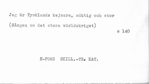 //// Jag är Tysklands kejsare, mäktig och stor (Sången om det stora världskriget) //// s 140 //// j //// H-FORS SKILL.-fS»- KAT. //// ^ , ¦ ___ ^_;„„ i.i^ r i -iJm...rrriinrtimi» ...éiT i li.rtf ^m^Th 1 i un iil^ti^nT^*^^ ////