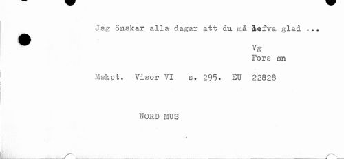 //// Jag önskar alla dagar att du må lefva glad ... //// Fors sn //// Mskpt. Tisor TI s. 295- SU 22828 //// NORD MUS //// , ...,,..___*___^...lä___^___ ////