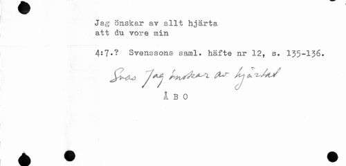//// Jag önskar a? allt hjärta att du vore min //// 4:7*? Svenssons saml. häfte nr 12, s. 135-136. //// Jj^ Ja* ^ Jj //// Ibo ////
