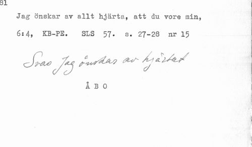 //// Jag önskar av allt hjärta, att du vore ain, 6:4, KB-PE. SLS 57. s. 27-28 nr 15 //// ÅBO //// i //// ! //// \ //// s //// I //// I //// '1 ////