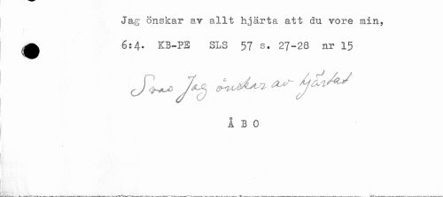 //// Jag önskar av allt hjärta att du vore min, //// i //// A 6:4. EB-PB SLS 57 s. 27-28 nr 15 //// S^ fy ^od^i ^ tj&AS //// 1 BO ////