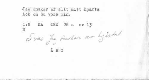 //// Jag önskar af allt mitt hjärta Åck om du vore min. //// 1:8 KA INE 28 a nr 13 //// ÅBO //// j //// 1 //// ... J»---i.lfc wy-r-.^. ---"-¦ ---"I'"* II. "»»».V.^»*---v---t- I it- . *w<---,w• W . --J. ---r. , --,-,,---.--,,H,^^r^^-iJjH.ut-*** --- 'II - r ////