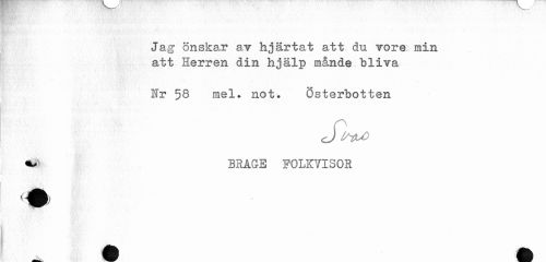//// Jag önskar av hjärtat att du vore., min att Herren din hjälp månde bliva //// Nr 58 mel. not. Österbotten //// BRAQS FOLKVISOR ////