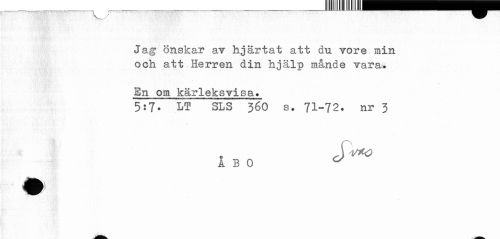 //// En om kårleksvisa. //// 5:7- LT SLS 360 s. 71-72. nr 3 //// 3 „ J ^ //// A B 0 ^ ////