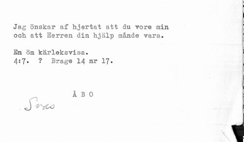 //// En Öm kärleksvisa. //// 4:7. ? Brage 14 nr 17. //// ÅBO ////