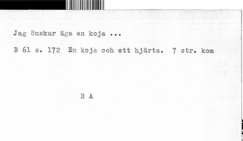 //// Jag önskar äga en koja ... //// B 61 s. 172 En koja och ett hjärta. 7 str. kom //// R A ////