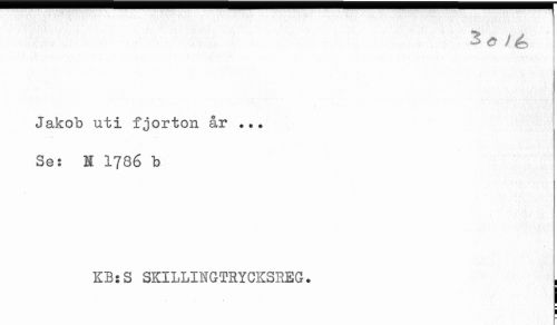 //// Jakob uti fjorton år ... //// Se: N 1786 b //// KB:S SKILLINGTRYCKSREG. , ////