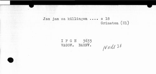 //// ——— ———^^^^^^^^^ //// Jam jam sa källingen .... s 18 //// Grimeton (Rl) //// . //// I F G H 3633 //// VAGGV. BARIIV. ////