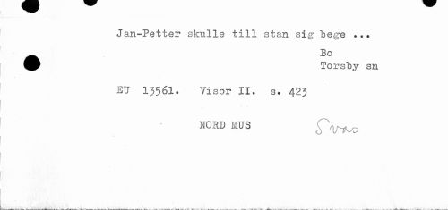 //// Jan-Petter skulle till stan sig bege ... //// ^ Bo //// Torsby sn //// EU 13561. Visor II. s. 423 //// NORD MUS //// 1 //// - //// L ______________- ... .. ., . ////