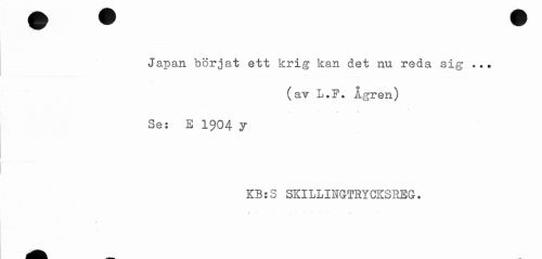 //// Japan börjat ett krig kan det nu reda sig ... //// (av L.F. Ågren) //// — <r //// Se: E 1904 y //// KB:S SKULINGTRYCKSREG. //// * * - j .. ^ . ////