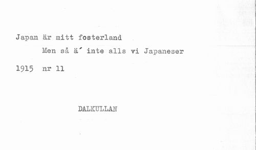 //// Japan är mitt fosterland //// Men så ä" inte alls vi Japaneser //// 1915 nr 11 //// DALKULLAN ////