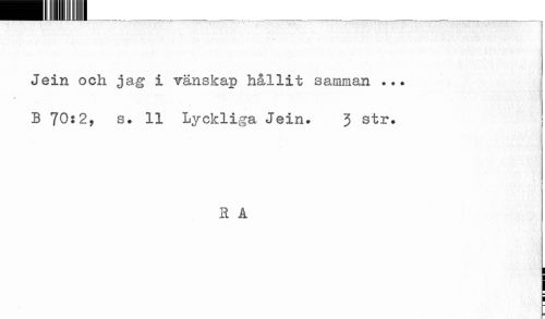 //// Jein och jag i vänskap hållit samman ... //// B 70:2, s. 11 Lyckliga Jein. 3 str. //// R A ////