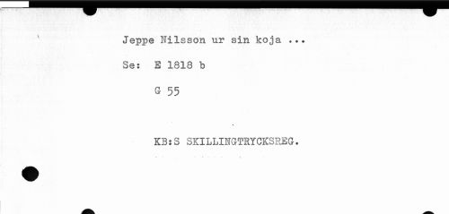 //// Jeppe Nilsson ur sin koja ... //// Se: E 1818 b //// G 55 //// KB:S SKILLINGTRYCKSREG. ////