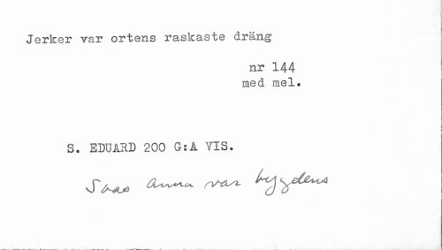 //// Jerker var ortens raskaste dräng //// nr 144 //// med mel. //// S. EDUARD 200 G:A VIS. ////