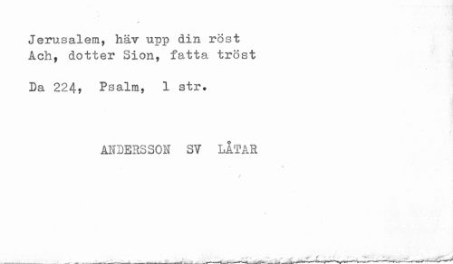 //// Jerusalem, häv upp din rost //// Ach, dotter Sion, fatta tröst //// Da 224, Psalm, 1 str. //// ANDERSSON SV LÅTAR //// .. * //// - . .. .......... ... . ^ f "...' _ -- . — ////