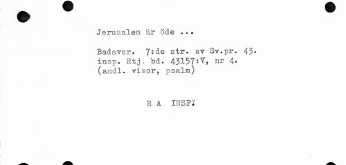 //// Jerusalem är öde ... //// Badavar. 7: de str. av Sv.pr. 43* //// insp. Rtj. bd. 43157=V, nr 4* //// (andl. visor, psalm) //// R A INSP2 ////