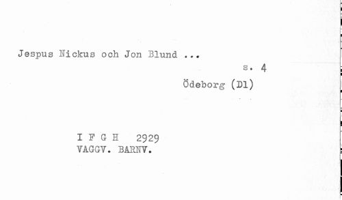 //// i //// Jespus Nickus och Jon Blund ... //// s. 4 //// ödeborg (Dl) //// ! //// < //// I F G H 2929 //// VAGGV. BARIVV. ; ////