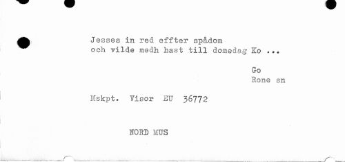 //// ^^ Jesses in red effter spådom //// och vilde medh hast till domedag Ko ... //// Go //// Rone sn //// Mskpt. Visor EU 36772 //// NORD MUS ////