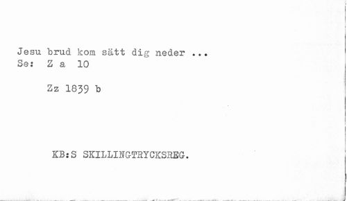 //// Jesu brud kom sätt dig neder ... //// Se: Z a 10 //// Zz 1839 b //// KB:S SKILLINGTRYCKSREG. //// < __.< J ////