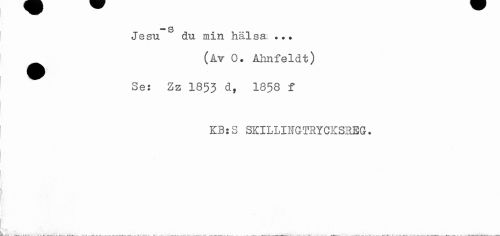 //// *** s //// Jesu du min halsa ... //// (Av 0. Ahnfeldt) //// Se: Zz 1853 d, 1858 f //// KB:S SHILLINGTRYCKS3EG. ////