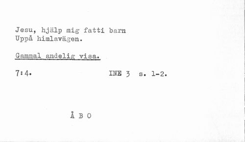 //// " //// Jesu, hjälp mig fatti barn //// Uppå himlavägen. //// Gammal andeliv visa. //// 7:4. INE 3 s. 1-2. //// ! //// ÅBO //// ..... . . .. * . . ' '. * .-.' - ;.< ! ////