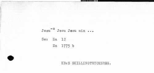 //// / //// . //// t'"; //// Jesu Jesu Jesu min ... //// Se: Za 12 //// Zz 1775 b //// KB:S SKILLINGTRYCKSREG. ////